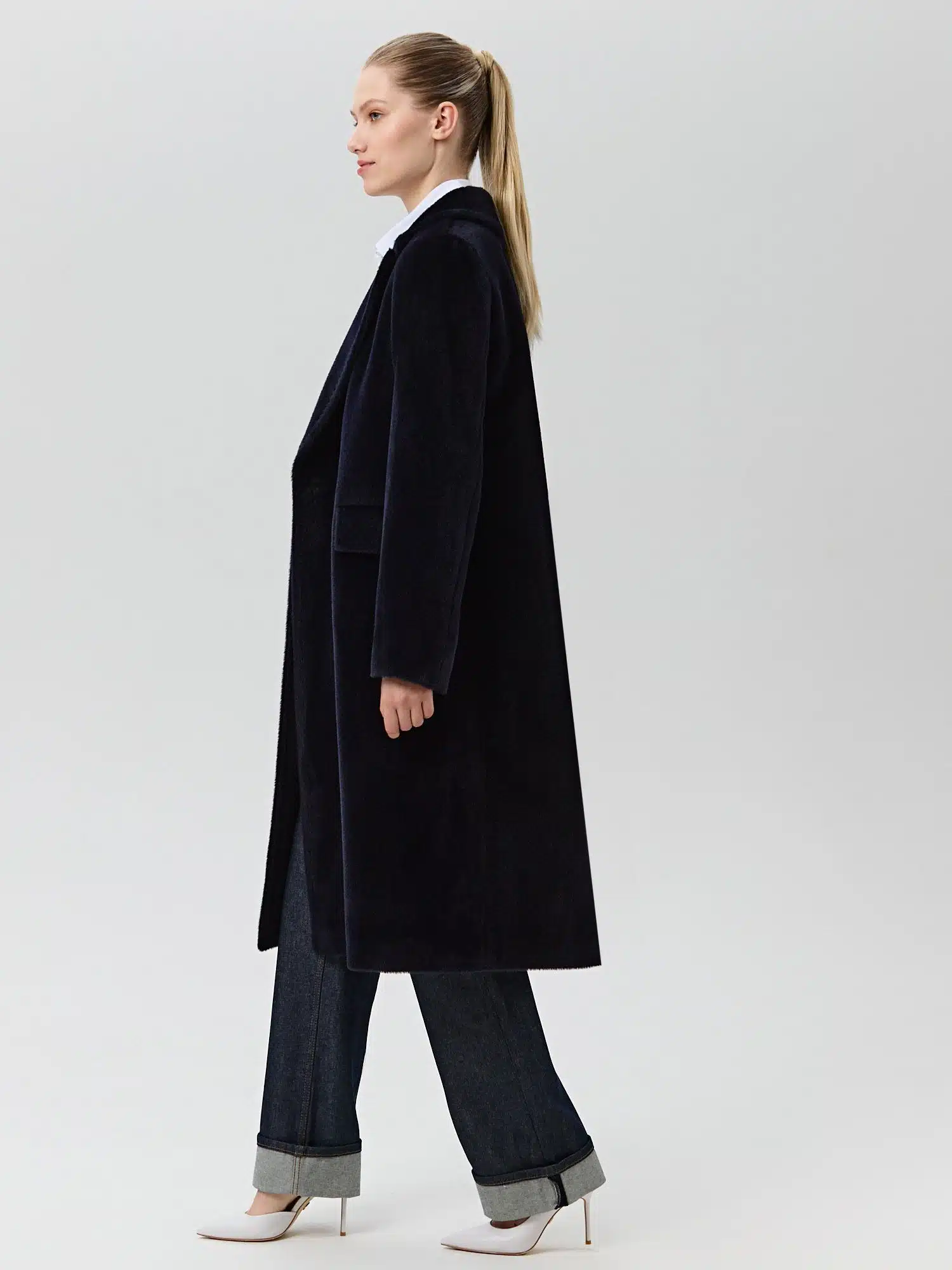 Пальто С 547 L черно-синий