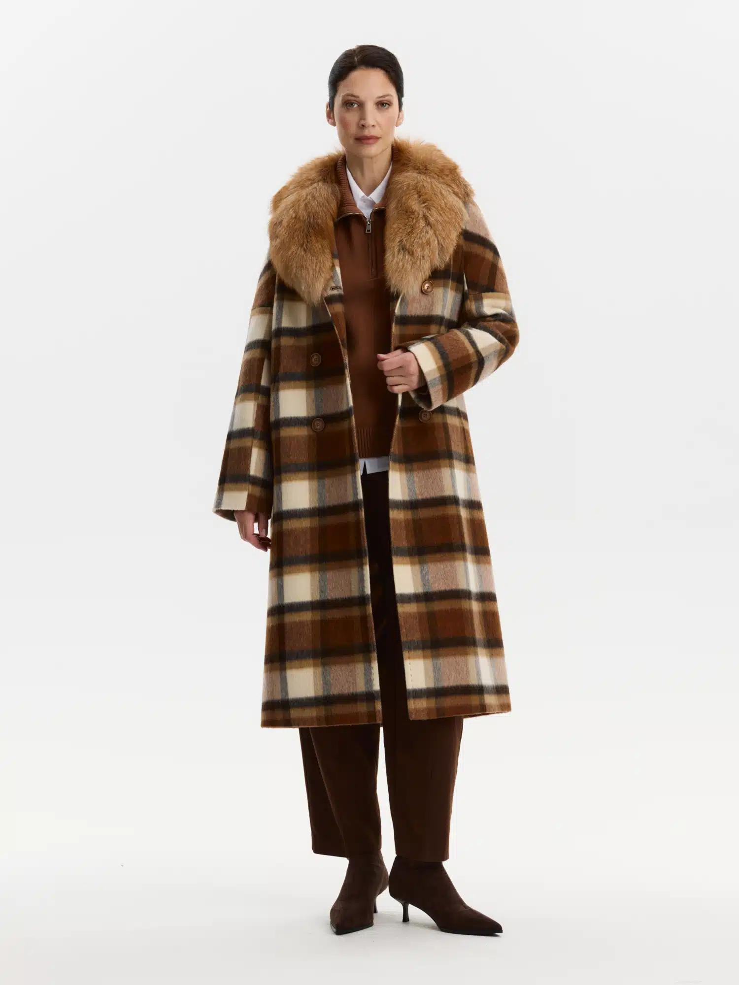 Пальто утепл. КМ1108 Z F клетка корица