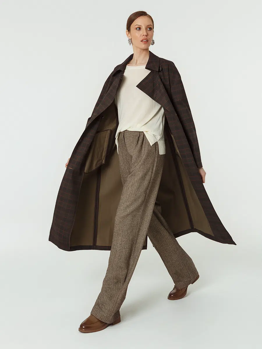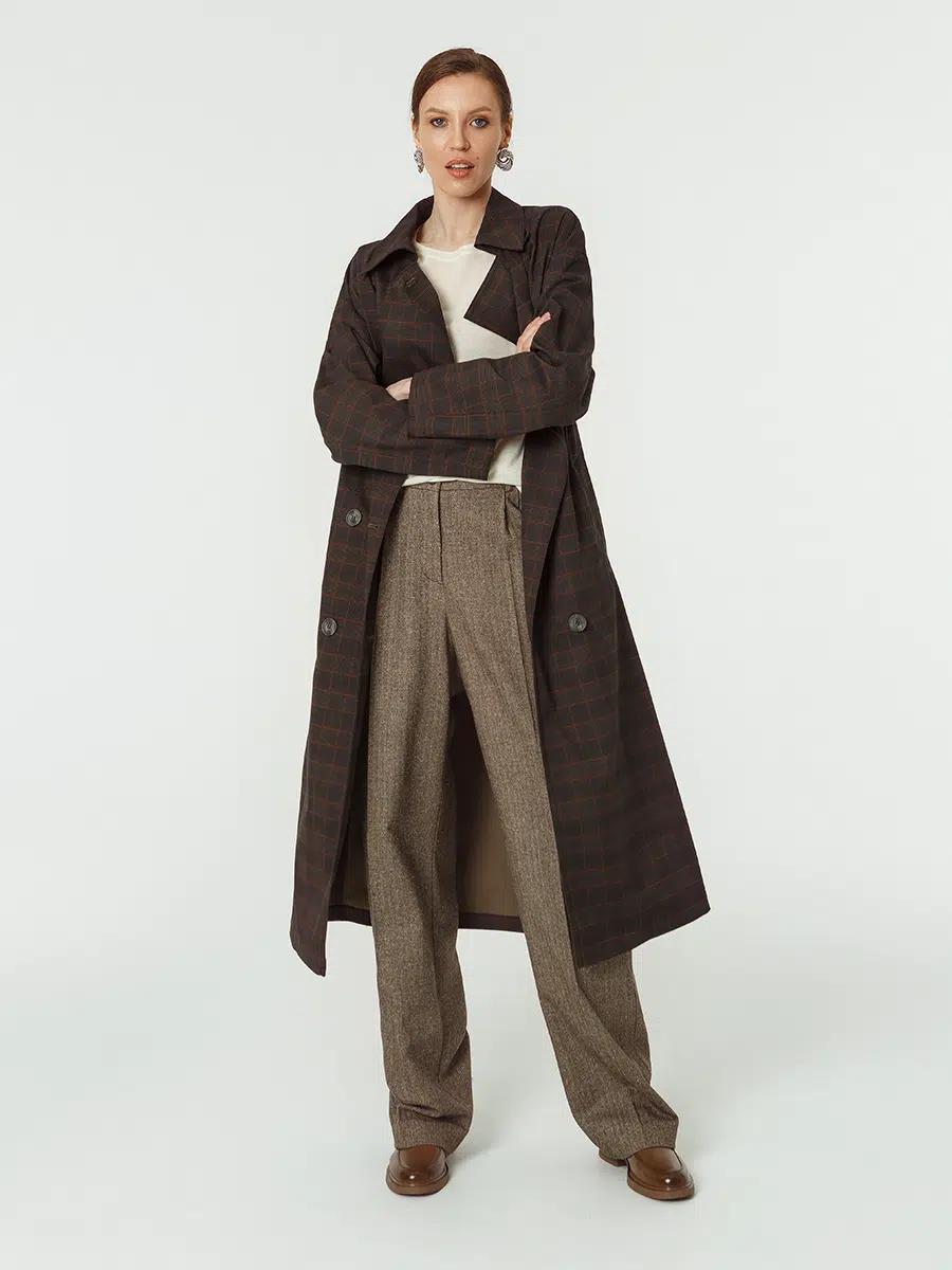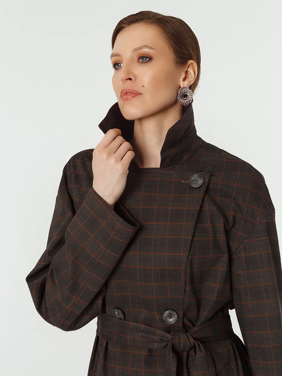 Плащ женский КМ1218-1 T клетка хаки