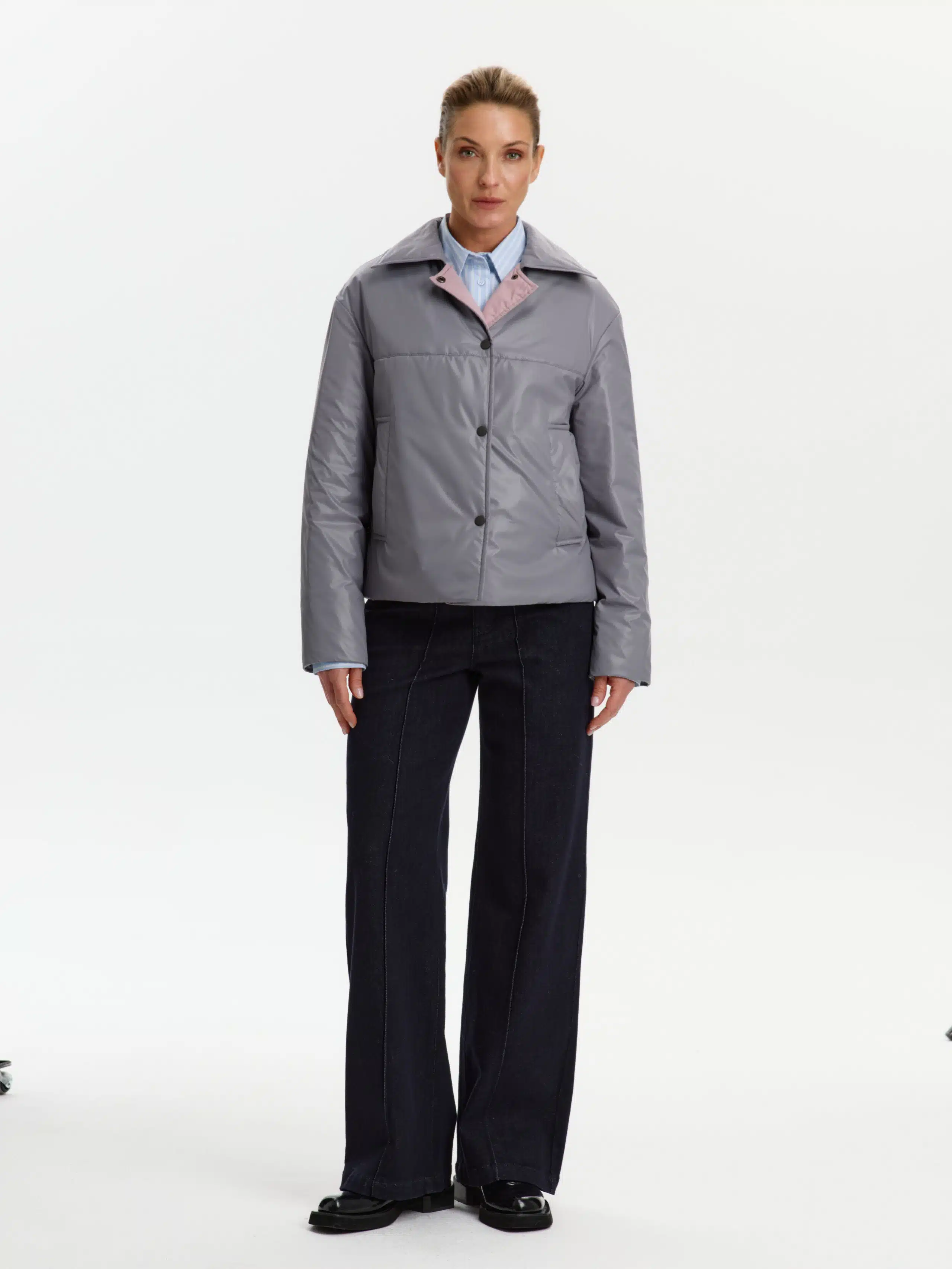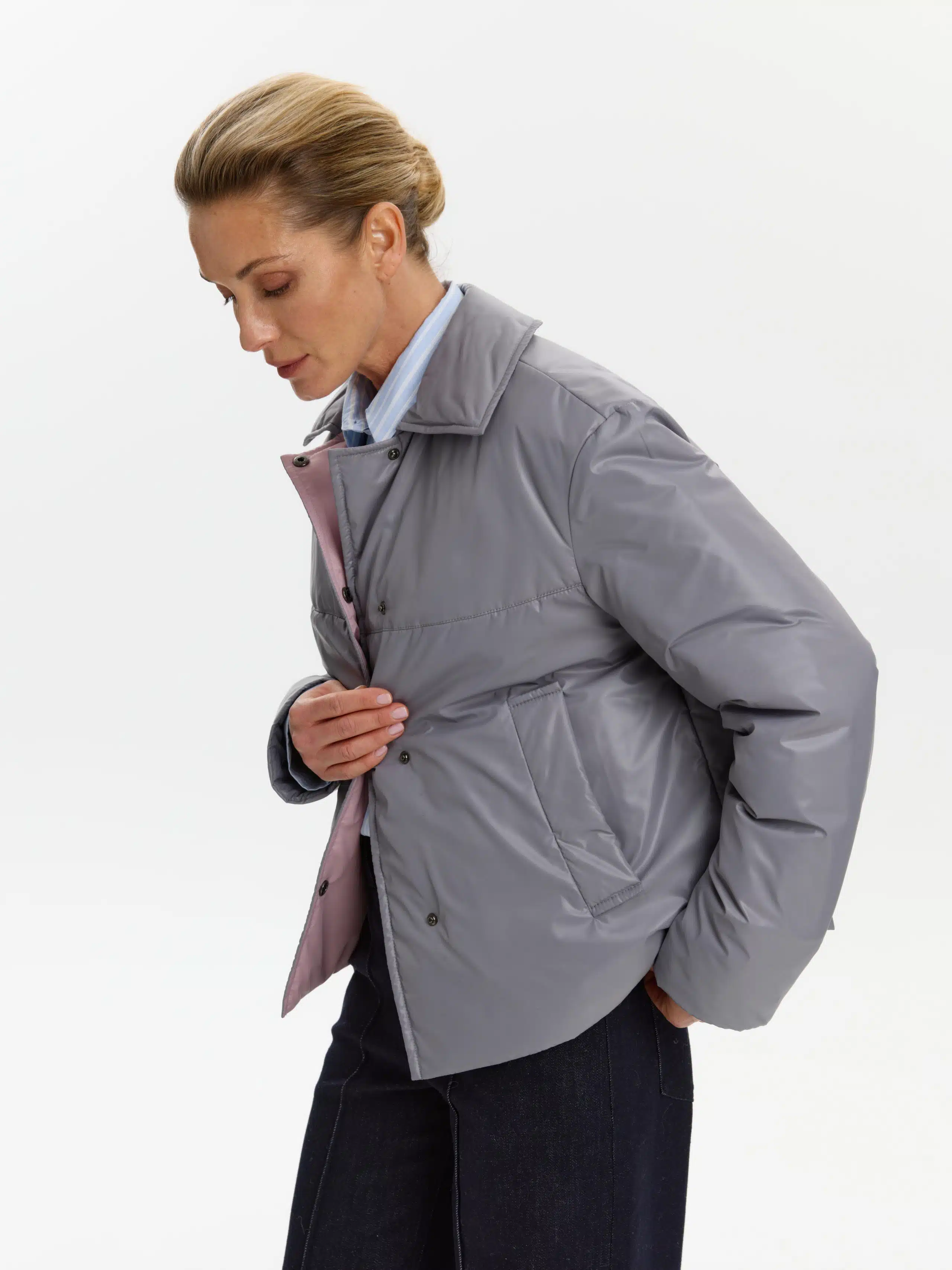 Пальто стеганое КМ1102-1S серый